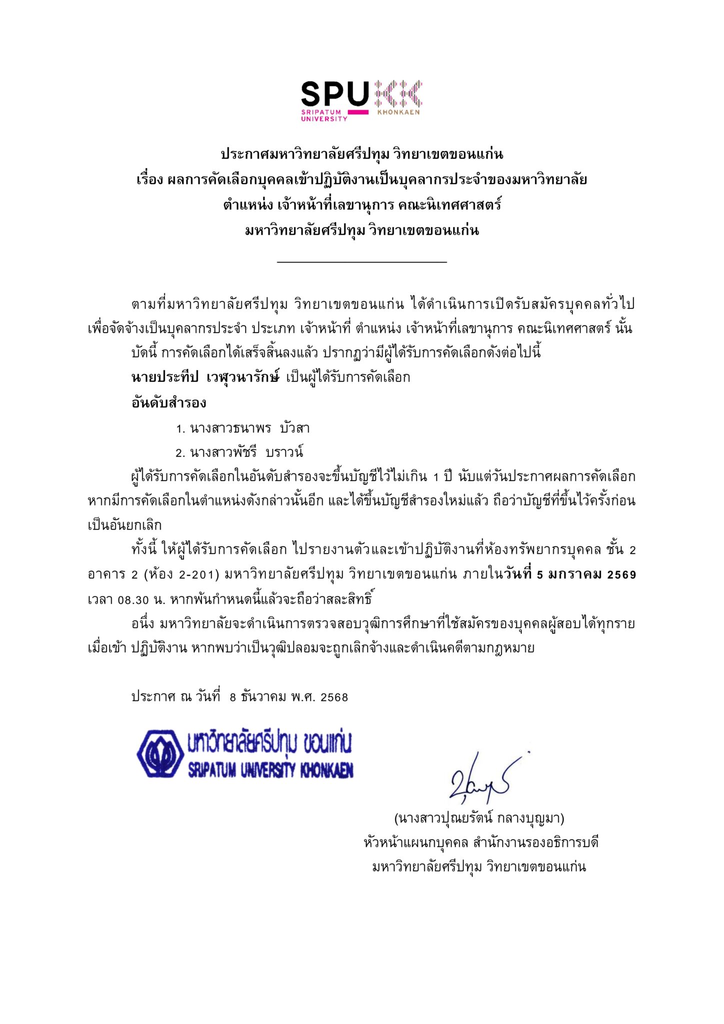 ประกาศผลการคัดเลือก ตำแหน่ง เลขานิเทศ