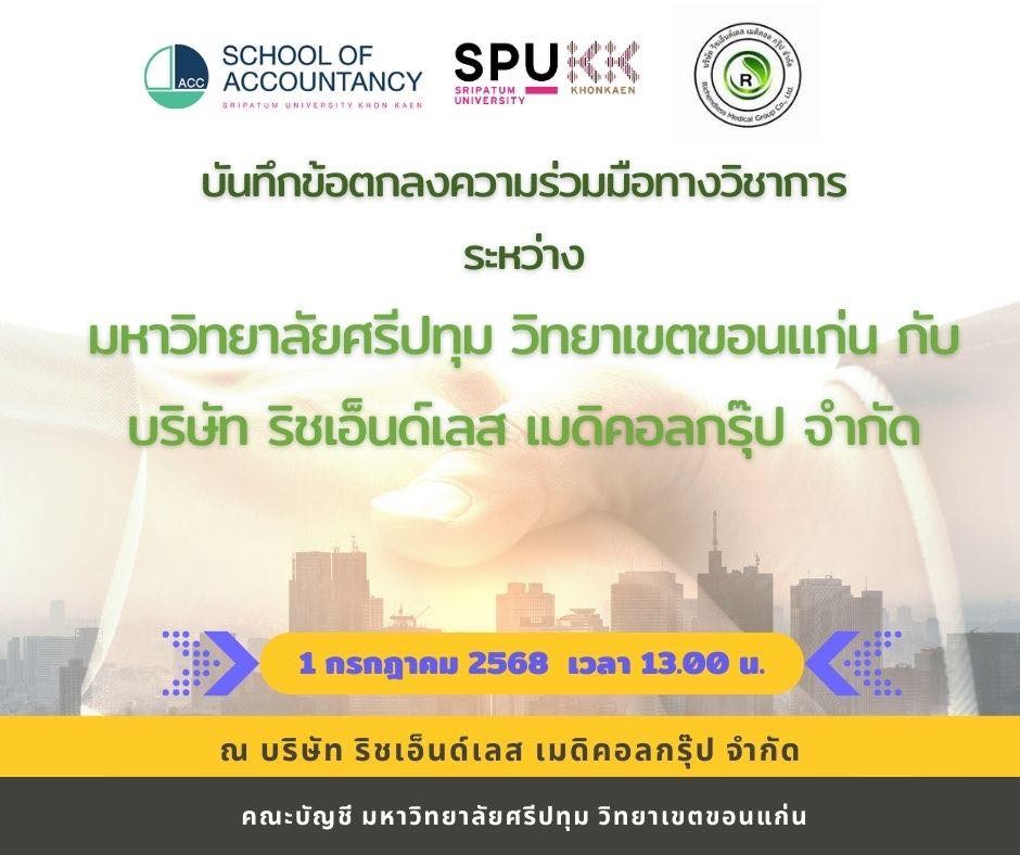 บันทึกข้อตกลงความร่วมมือทางวิชาการ ระหว่าง มหาวิทยาลัยศรีปทุม วิทยาเขตขอนแก่น และ บริษัท ริชเอ็นด์เลส เมดิคอลกรุ๊ป จำกัด