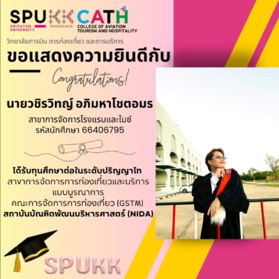 แลนดิ้งสู่ SPUKK Airline สายการบินที่นักศึกษาได้เรียนรู้จากห้องปฏิบัติการจริง! พร้อมปูเส้นทางสู่แอร์โฮสเตสและแอร์กราวน์ให้นักศึกษา! ปั้นน้องๆ ให้มีคุณสมบัติตรงใจตลาดแรงงานธุรกิจการบิน จบไปมีงานทำแน่นอน! ด้วยหลักสูตรสุดทันสมัย ในห้องปฏิบัติการณ์ที่จำลองตั้งแต่หน้าสนามบินจนถึงในเครื่องบินมาให้ฝึกฝน ถ่ายทอดความรู้เน้นๆ จากผู้มีประสบการณ์ตรงในสายอาชีพธุรกิจการบิน ให้เก่งทั้งภาคทฤษฎีและปฏิบัติ พร้อมบินได้อย่างสง่าผ่าเผย